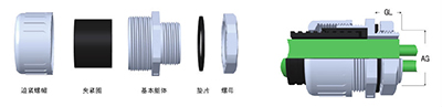 性能:黃銅鍍鎳制成,配合三元乙丙密封圈,擰緊后密封波紋管且防護等級為IP68